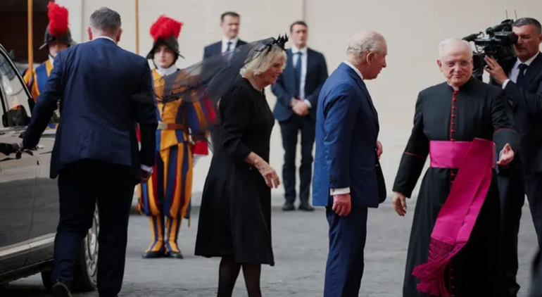 მეფე ჩარლზი ვატიკანში დედოფალ კამილასთან ერთად ჩავიდა. დახვედრის ღონისძიებაზე ბრიტანეთის ეროვნული ჰიმნი შესრულდა. მეფე ჩარლზი და დედოფალი კამილა პაპ ლეო XIV-სთან შესახვედრად ავტოკოლონით გაემართნენ.