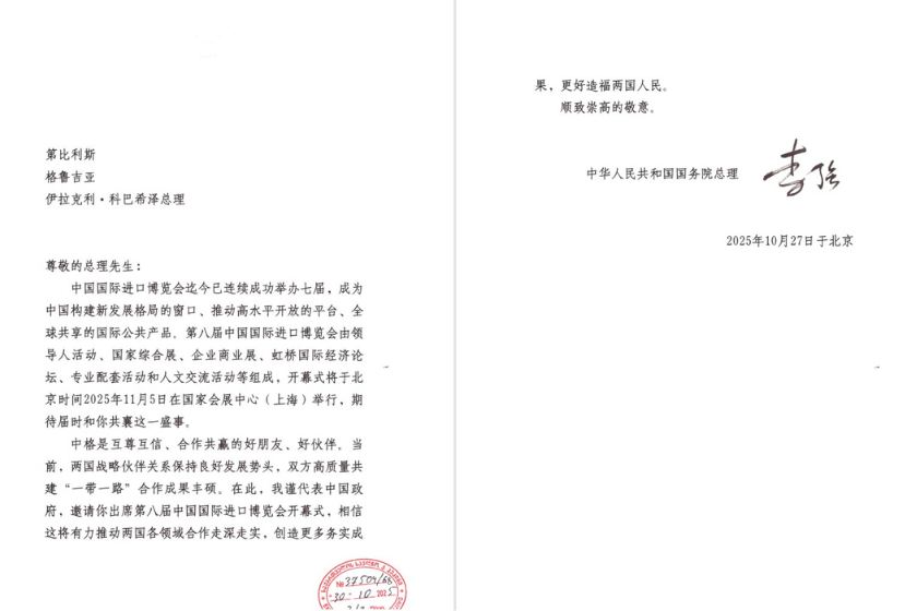 ჩინეთის სახალხო რესპუბლიკის სახელმწიფო საბჭოს პრემიერმა ირაკლი კობახიძე ჩინეთის იმპორტის საერთაშორისო გამოფენის გახსნის ცერემონიაზე მიიწვია