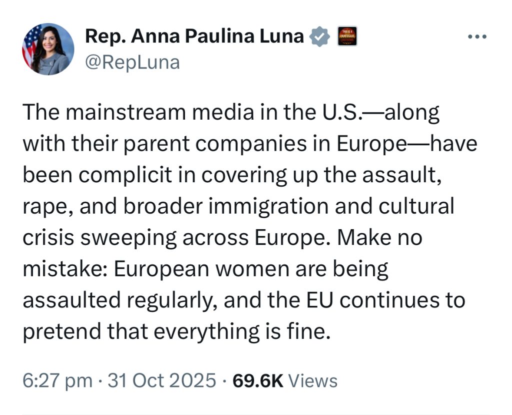 კონგრესმენმა ანა პაულინა ლუნამ ამერიკული და ევროპული მედია ევროპაში არსებული პრობლემების დაფარვაში დაადანაშაულა