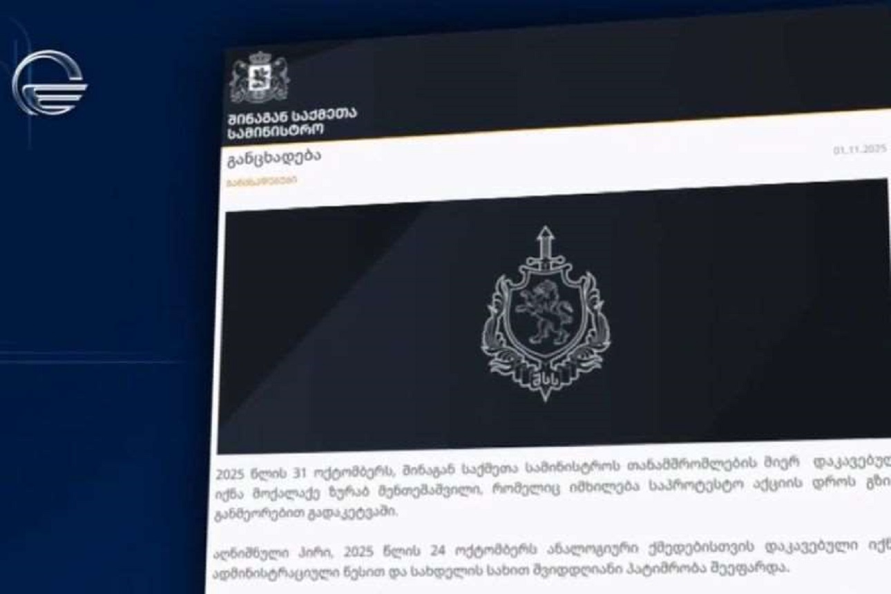 შსს-ს ინფორმაციით, ზურაბ მენთეშაშვილი პირველად 2025 წლის 24 ოქტომბერს ადმინისტრაციული წესით დააკავეს და სახდელის სახით შვიდდღიანი პატიმრობა შეეფარდა. შესაბამისად, ქმედების განმეორებით ჩადენის გამო, მის მიმართ დაიწყო გამოძიება სისხლის სამართლის კოდექსის 347-ე მუხლის პირველი ნაწილით, რაც შეკრების ან მანიფესტაციის ჩატარების წესის დარღვევას გულისხმობს.