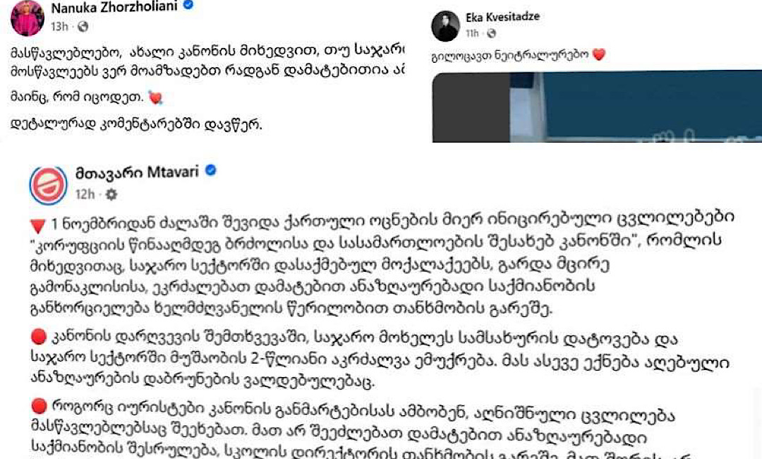ინფორმაცია თითქოს მასწავლებლებს სკოლის გარეთ, დირექტორის თანხმობის გარეშე მოსწავლეების მომზადება აღარ შეეძლებათ სიცრუეა