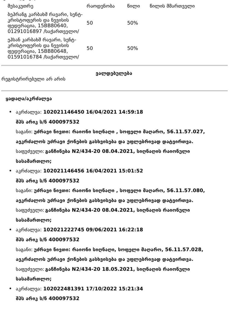2012 წელს საქართველოს მოქალაქეობა მიენჭათ არაბ ინვესტორებს აგვისტოს თვეში ფორსირებულად, რომლებსაც მიზერულ თანხად გადაეცათ საკუთრებაში 3000 ჰექტარი მიწა საგარეჯოსა და სიღნაღში. ეს ჯგუფი ეწევა სოფლის მეურნეობას უკვე საკუთარ მიწებზე და აქ იაფად წარმოებული პროდუქტი მთლიანად გააქვს არაბულ ქვეყნებში.