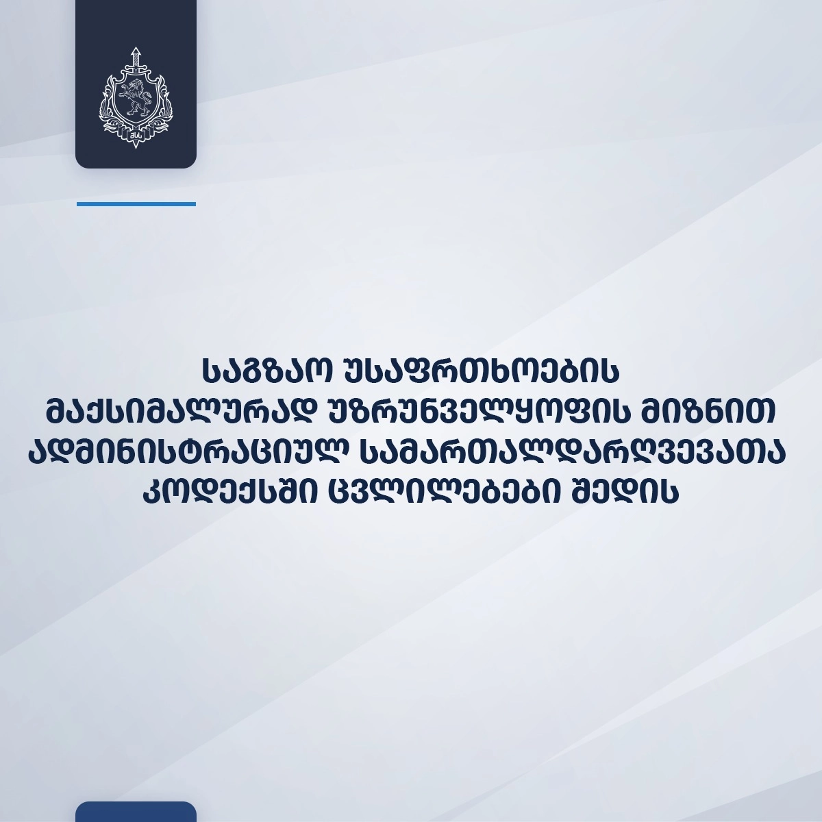 საგზაო უსაფრთხოების მაქსიმალურად უზრუნველყოფის მიზნით, ადმინისტრაციულ სამართალდარღვევათა კოდექსში ცვლილებები შედის