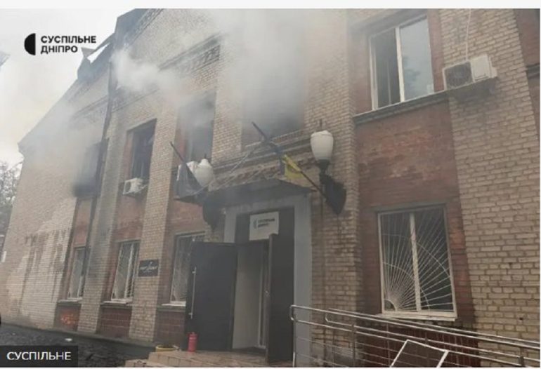 რუსეთის იერიშის შედეგად, უკრაინის საზოგადოებრივი მაუწყებლისა და რადიო “დნიპროს“ შენობაში ხანძარია