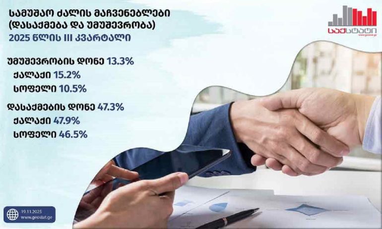 საქსტატი – მესამე კვარტალში საქართველოში უმუშევრობის დონე 13.3 პროცენტამდე შემცირდა