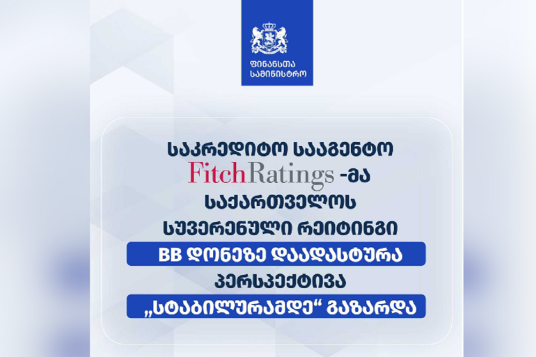 საკრედიტო სააგენტო “ფიჩმა” (Fitch) საქართველოს სუვერენული რეიტინგი BB დონეზე დაადასტურა და პერსპექტივა “სტაბილურამდე” გააუმჯობესა.