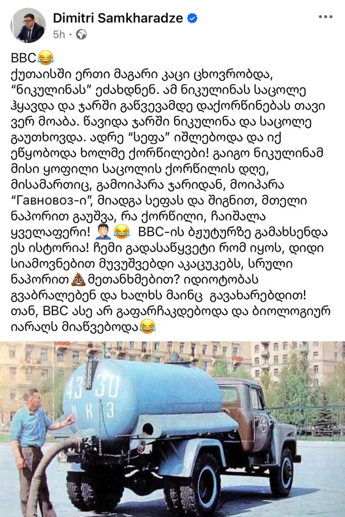 დიმიტრი სამხარაძე BBC-ის სტატიაზე: იდიოტობას გვაბრალებენ