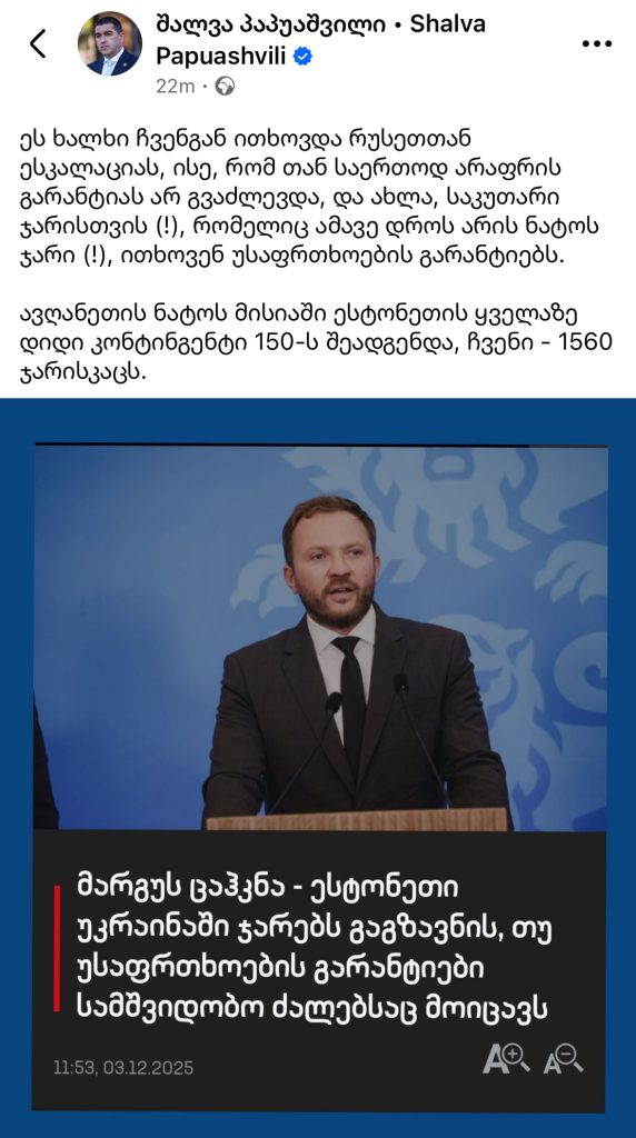 შალვა პაპუაშვილი: ეს ხალხი ჩვენგან ითხოვდა რუსეთთან ესკალაციას, ისე რომ თან საერთოდ არაფრის გარანტიას არ გვაძლევდა