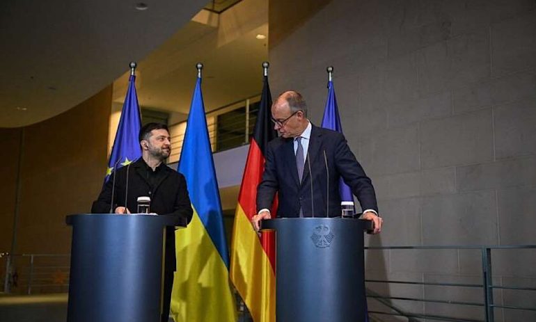 გერმანიის კანცლერმა, ფრიდრიხ მერცმა უკრაინის პრეზიდენტთან, ვოლოდიმირ ზელენსკისთან ერთობლივი პრესკონფერენცია ამერიკის შეერთებული შტატების პრეზიდენტის, დონალდ ტრამპის სამშვიდობო ძალისხმევის ქებით დაიწყო.