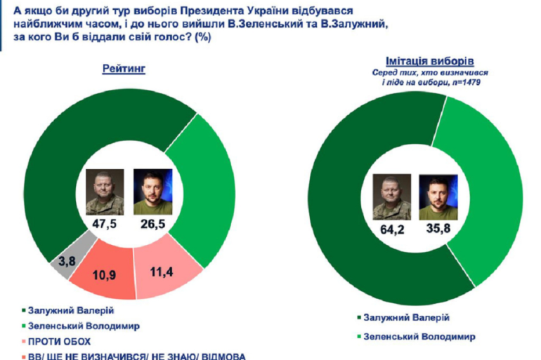 გამოკითხვის მიხედვით უკრაინაში საპრეზიდენტო არჩევნების ჩატარების შემთხვევაში ზელენსკი ზალუჟნისთან და ბუდანოვთან დამარცხდებოდა