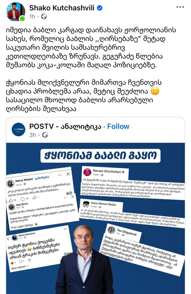 “იმედია ბაბლი კარგად დაინახავს ჟორჟოლიანის სახეს, რომელიც ბაბლის ,,ღირსებაზე” მეტად საკუთარი შვილის სამსახურებრივ კეთილდღეობაზე ზრუნავს”