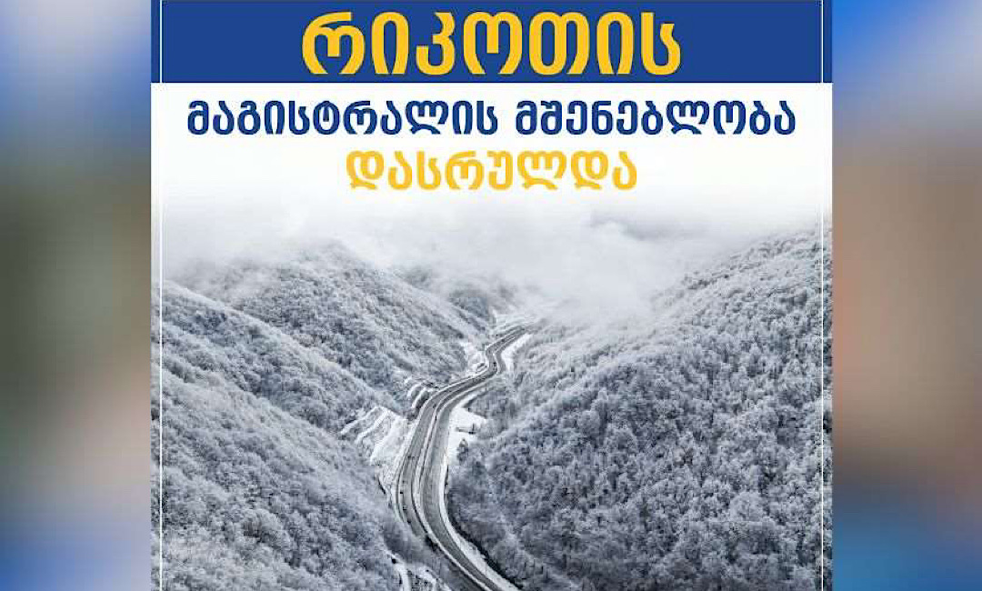 რიკოთის უღელტეხილზე მაგისტრალური გზის მშენებლობა დასრულდა და 30 დეკემბრის შუადღიდან მოძრაობა რიკოთის 52-კილომეტრიან ახალ, 4-ზოლიან ჩქაროსნულ გზაზე სრულად გაიხსნება, – აღნიშნულია ინფრასტრუქტურის სამინისტროს მიერ გავრცელებულ ინფორმაიცაში.