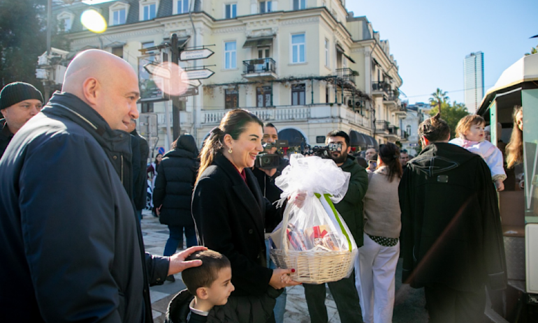 მსვლელობას აჭარის მთავრობის წევრებიც შეუერთდნენ და მონაწილეებს საშობაო ნობათები გადასცეს.