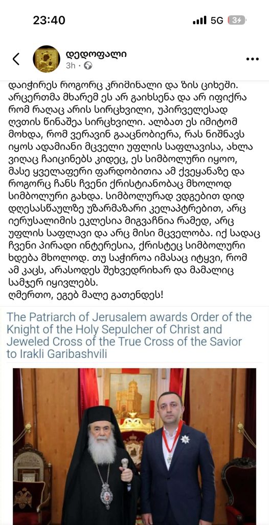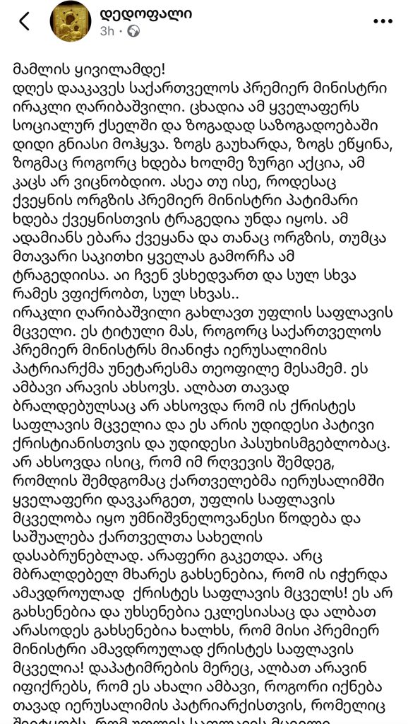 ღვთისმშობლის სასწაულებრივი ხატის მცველები ოფიციალურ გვერდზე პოსტს აქვეყნებენ.