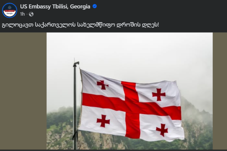 აშშ-ის საელჩო საქართველოს სახელმწიფო დროშის დღეს ულოცავს
