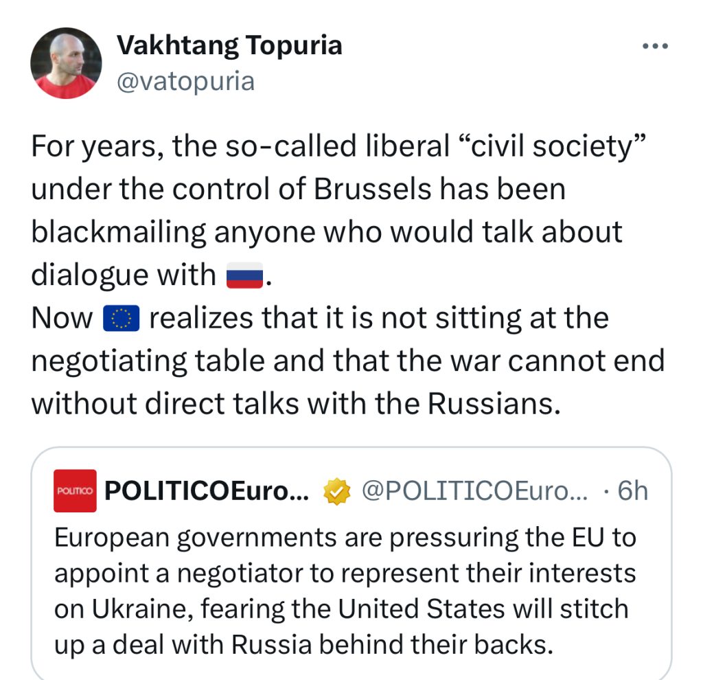 “ახლა ევროკავშირი მიხვდა, რომ ომის დასრულება რუსებთან მოლაპარაკებების გარეშე შეუძლებელია”