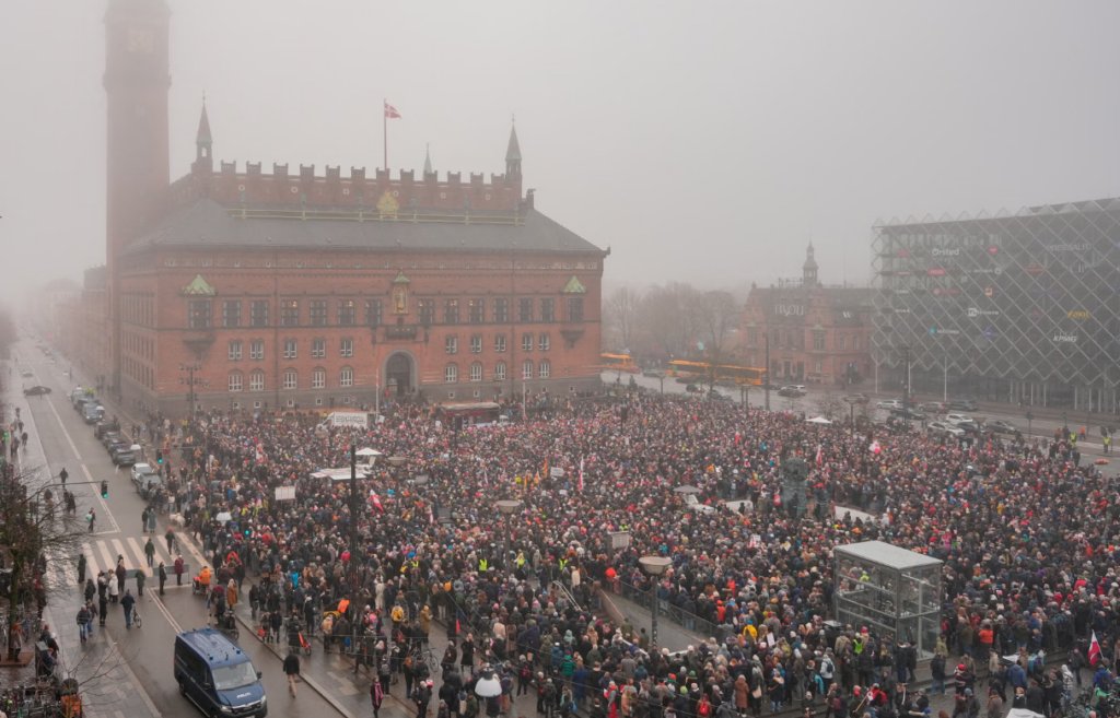დემონსტრანტები კოპენჰაგენში, აშშ-ს საელჩოს წინ შეიკრიბნენ და სხვადასხვა ფრაზებს სკანდირებდნენ, მათ შორის, „ხელები შორს გრენლანდიისგან“.