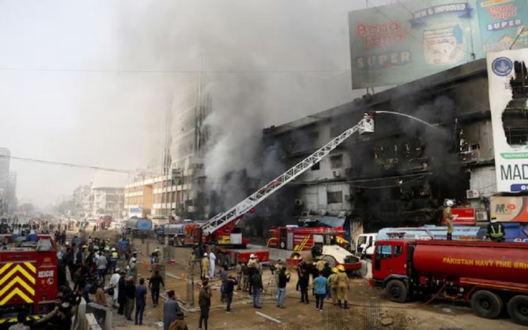პაკისტანში, ქალაქ კარაჩის სავაჭრო ცენტრში მასშტაბური ხანძრის შედეგად 14 ადამიანი დაიღუპა, ათობით კი დაკარგულად ითვლება.