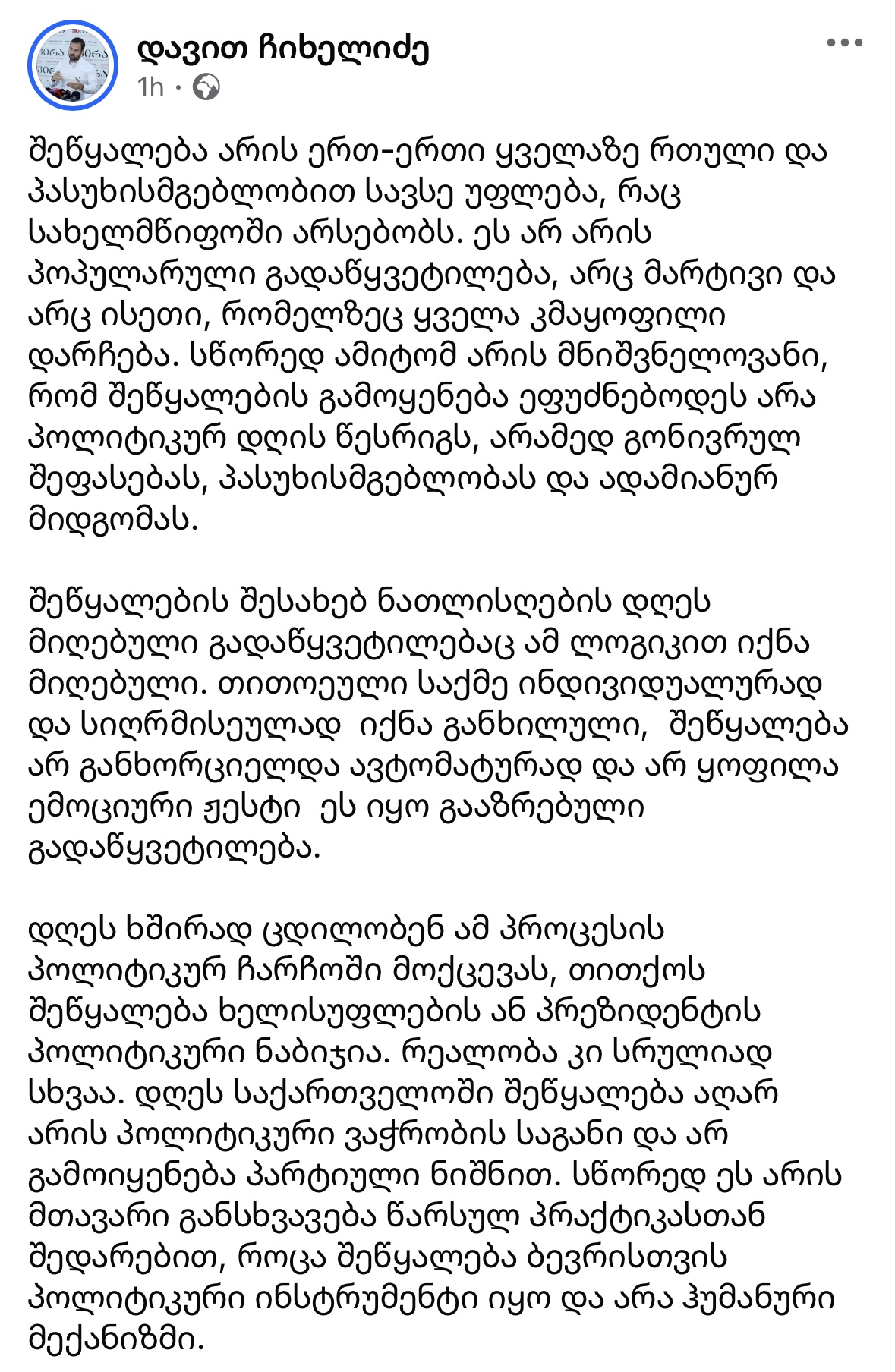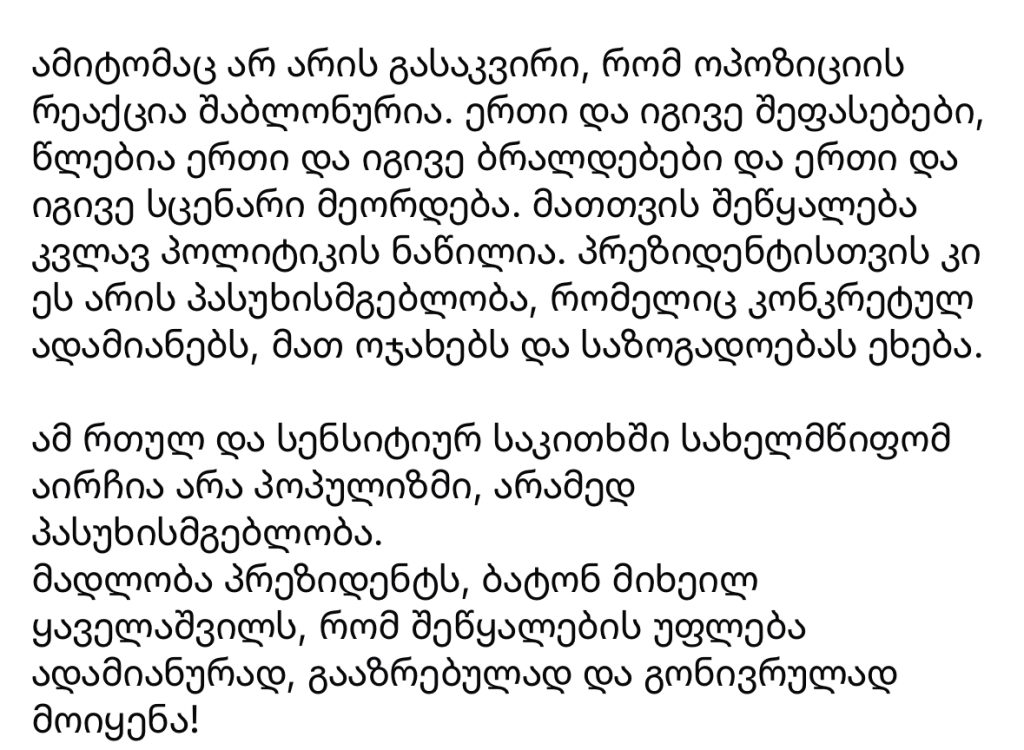 “მადლობა პრეზიდენტს, რომ შეწყალების უფლება ადამიანურად და გონივრულად მოიყენა”