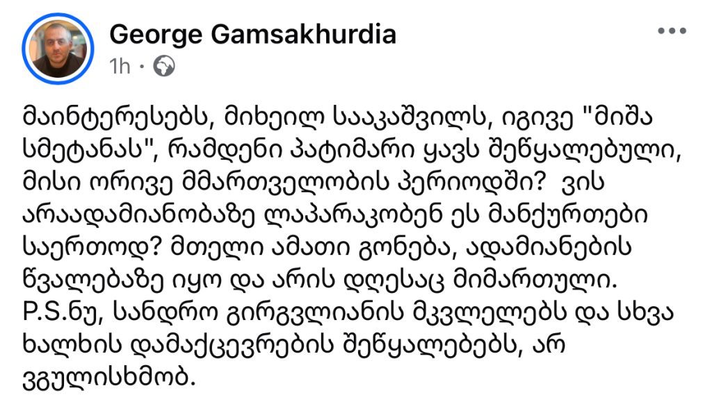 “მაინტერესებს სააკაშვილს იგივე „მიშა სმეტანას“, რამდენი პატიმარი ჰყავს შეწყალებული, მისი ორივე მმართველობის პერიოდში”