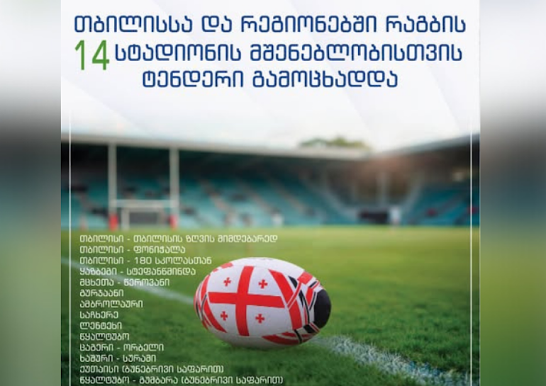 ინფრასტრუქტურის სამინისტროს მუნიციპალური განვითარების ფონდი თბილისსა და ქვეყნის სხვადასხვა რეგიონში თანამედროვე სტანდარტების შესაბამისი სარაგბო მოედნების მშენებლობას იწყებს. ინფორმაციას ინფრასტრუქტურის სამინისტრო ავრცელებს.