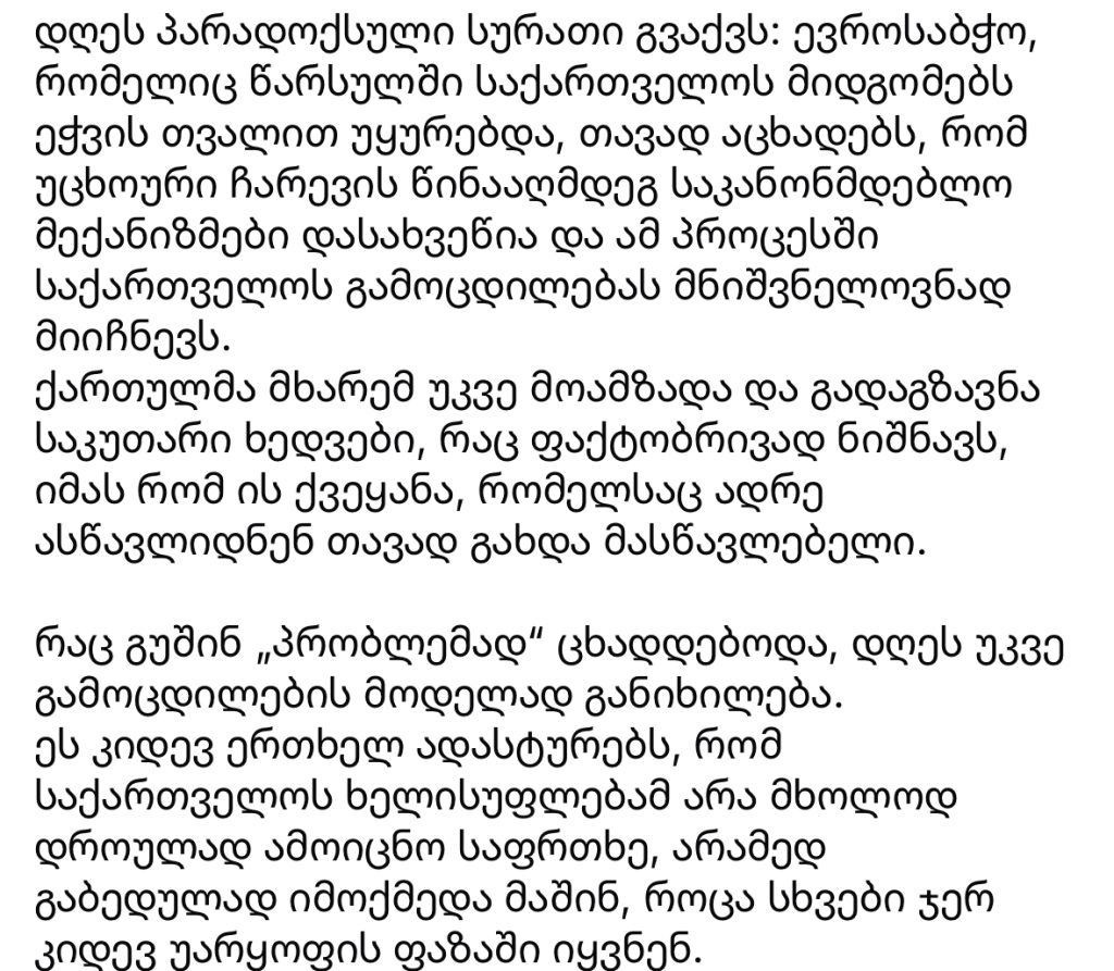 “ევროსაბჭო ამ პროცესში საქართველოს გამოცდილებას მნიშვნელოვნად მიიჩნევს“