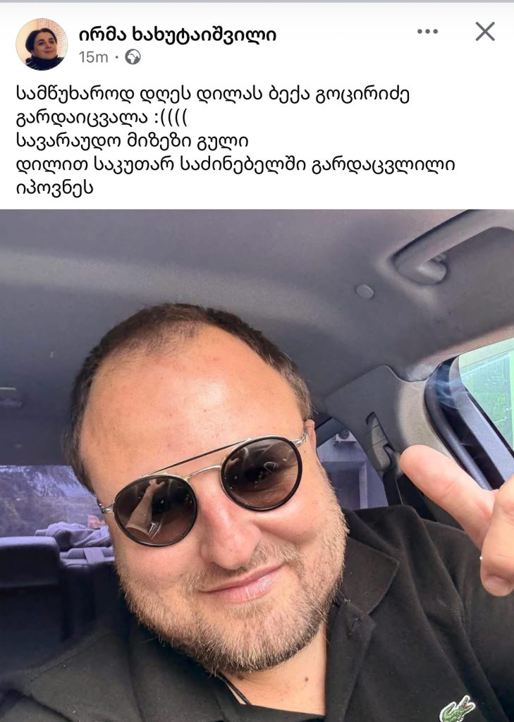 ”სამწუხაროდ დღეს დილას ბექა გოცირიძე გარდაიცვალა :((((