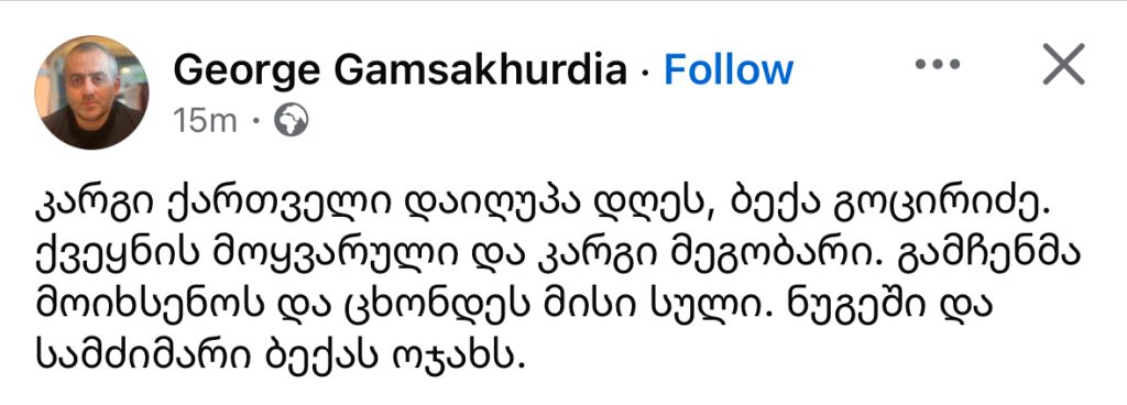 ”კარგი ქართველი დაიღუპა დღეს ბექა გოცირიძე“