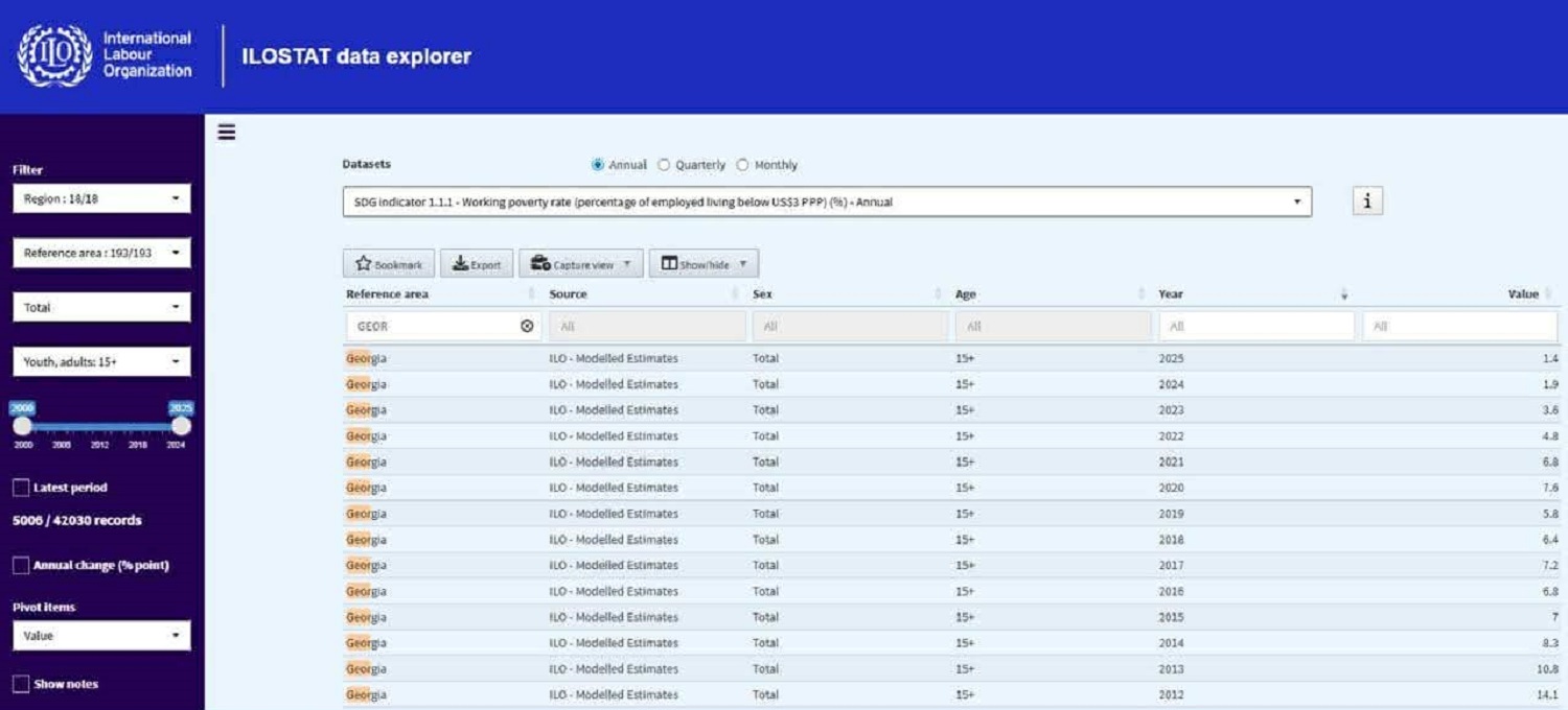 შრომის საერთაშორისო ორგანიზაციის შეფასებით, „სამუშაო სიღარიბის დონე“ საქართველოში ახალ ისტორიულ მინიმუმზეა და 2012 წლის შემდეგ 10-ჯერ არის შემცირებული