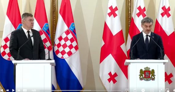 საქართველოს პრეზიდენტის სასახლეში ხორვატიის რესპუბლიკის პრეზიდენტის, ზორან მილანოვიჩის დახვედრის ოფიციალური ცერემონია გაიმართა.