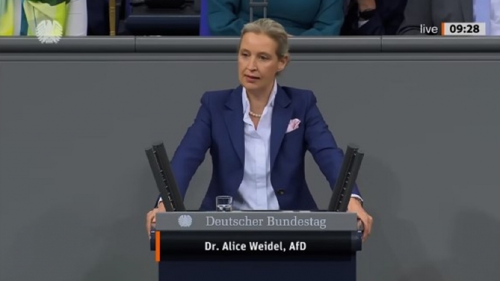 პარტია ალტერნატივა გერმანიისთვის ლიდერმა, ბუნდესტაგში სიტყვით გამოსვლის დროს – უკრაინის პრეზიდენტს მიმართა. ალის ვაიდელმა, ვოლოდიმირ ზელენსკის მოუწოდა იაფფასიანი სპექტაკლები შეწყვიტოს და გმირის ნიღაბი მოიხსნას.
