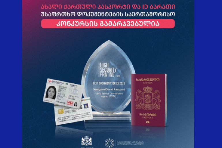 ახალი ბიომეტრიული პასპორტი და პირადობის ელექტრონული მოწმობა, რომელთა გაცემა იუსტიციის სამინისტროს სახელმწიფო სერვისების განვითარების სააგენტომ 2025 წელს დაიწყო, წარდგენილი იყო უსაფრთხო დოკუმენტების ტექნოლოგიების რეგიონული ფორუმის – „მაღალი უსაფრთხოების ბეჭდვა 2026“ (High Security Printing EMEA 2026) ფარგლებში გამართულ კონკურსში, ნომინაციაში – „საუკეთესო დოკუმენტების სერია“.