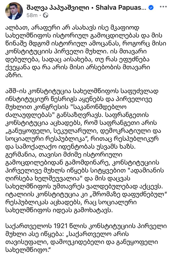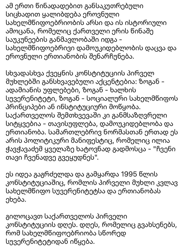 “გილოცავთ საქართველოს პირველი კონსტიტუციის დღეს”