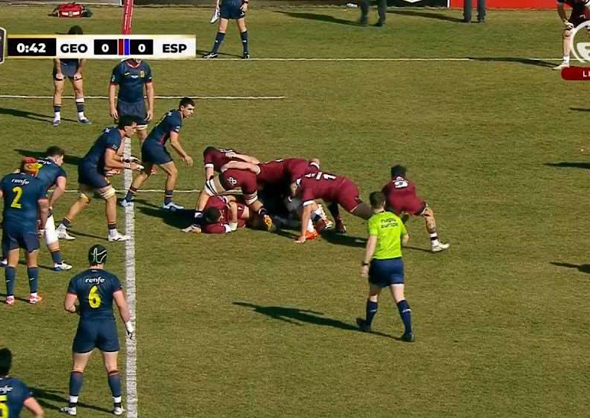 საქართველოს მორაგბეთა ეროვნულ ნაკრებისა და ესპანეთის ნაკრებს შორის მატჩი მიმდინარეობს.
