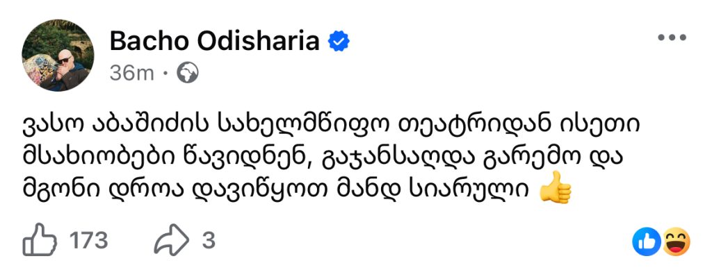 “ვასო აბაშიძის სახელმწიფო თეატრიდან ისეთი მსახიობები წავიდნენ, გაჯანსაღდა გარემო და მგონი დროა დავიწყოთ მანდ სიარული”