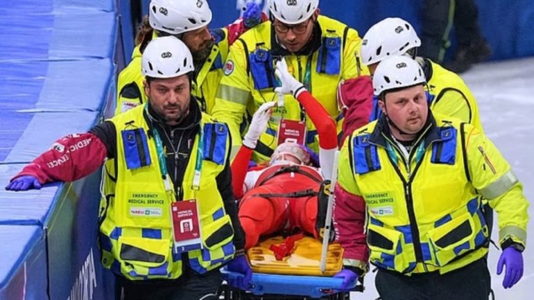მძიმე ტრავმა ზამთრის ოლიმპიურ თამაშებზე – მეტოქის ციგურით სპორტსმენმა სახის დაზიანება მიიღო