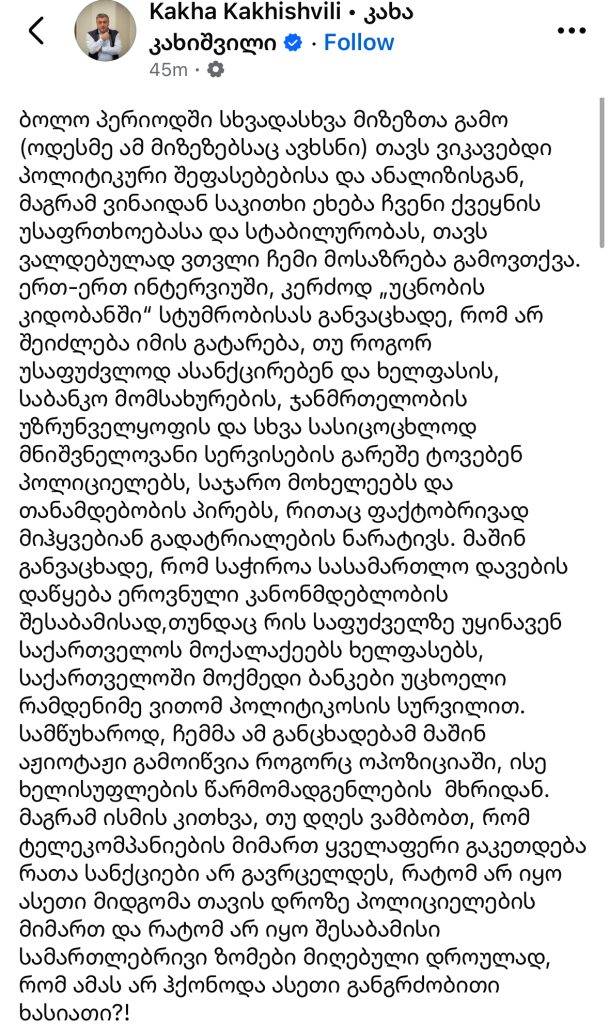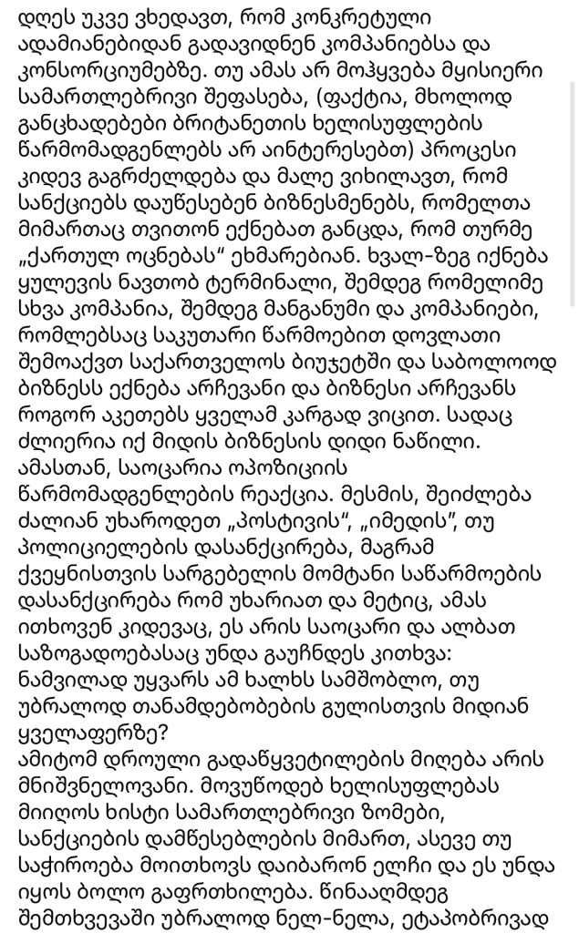 “მოვუწოდებ ხელისუფლებას მიიღოს ხისტი სამართლებრივი ზომები სანქციების დამწესებლების მიმართ”