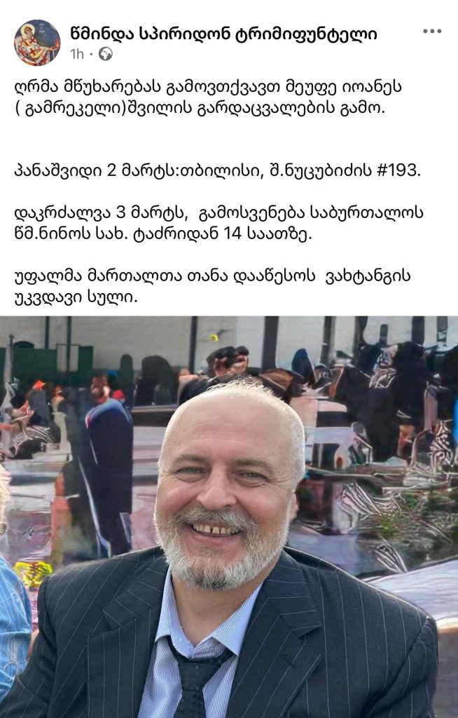 ”ღრმა მწუხარებას გამოვთქვავთ მეუფე იოანეს ( გამრეკელი)შვილის გარდაცვალების გამო.
