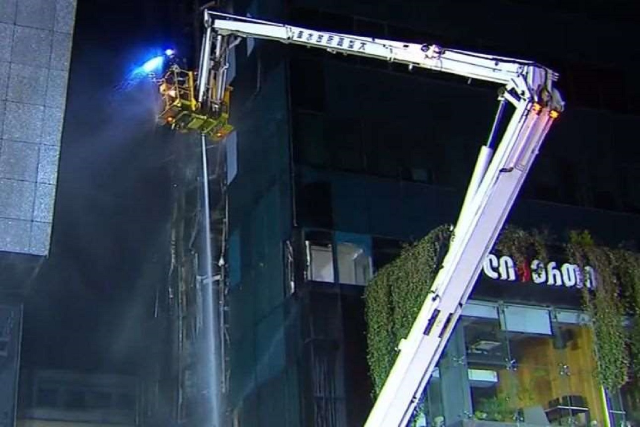 „დაიწვა 18-სართულიანი ბანკის სათავო ოფისის სატვირთო ლიფტის შახტი. დაშავებული, საბედნიეროდ, არავინაა. მობილიზებულია 20 სახანძრო ავტოტექნიკა ამ დროისთვის. ხანძარი ბოლომდე ლიკვიდირებულია, სრულად. წინასწარ ვერაფერს მოგახსენებთ, ხანძრის მიზეზი რა შეიძლება, ყოფილიყო, ამ დროისთვის ცნობილი არაფერი არ არის. შიგნით არავინ იმყოფებოდა. სწრაფი რეაგირების შედეგად, მოხერხდა, რომ ოფისში, ფართებში არ იყო გავრცელებული ხანძარი. დროულად მოხდა ლიკალიზება და უკვე ლიკვიდაციაც“, – განაცხადა საგანგებო სიტუაციების მართვის სამსახურის უფროსმა, თემურ მღებრიშვილმა.