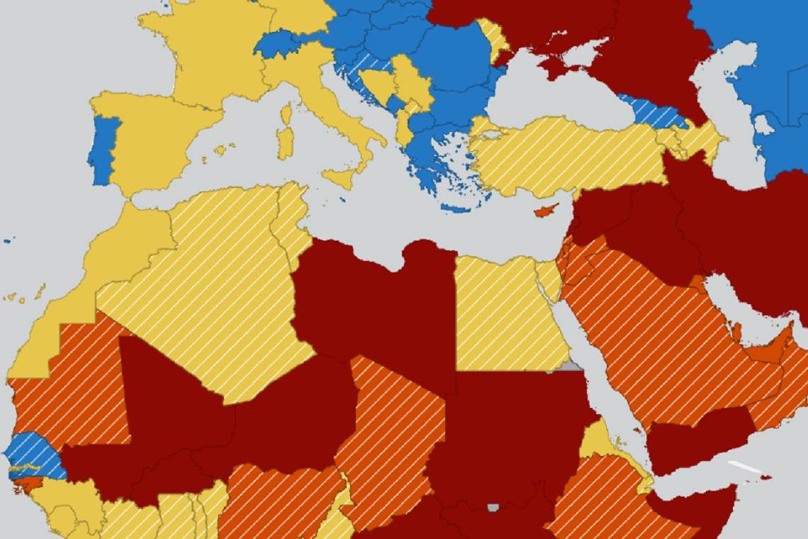 მსოფლიოს ქვეყნები დაყოფილია ოთხდონიან სისტემად, რომელიც მოგზაურებს შესაძლო რისკების შესახებ აწვდის ინფორმაციას.