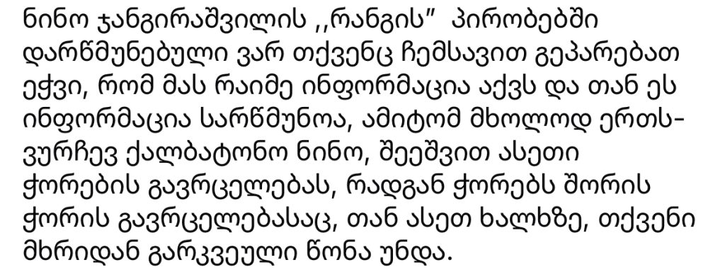 “შეეშვით ჭორების გავრცელებას, რადგან ჭორის გავრცელებასაც, თან ასეთ ხალხზე თქვენი მხრიდან გარკვეული წონა უნდა”