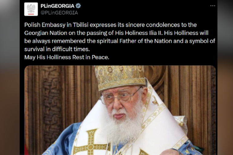 საქართველოში პოლონეთის საელჩო სრულიად საქართველოს კათოლიკოს-პატრიარქის ილია მეორის გარდაცვალების გამო ქართველ ერს სამძიმარს უცხადებს.