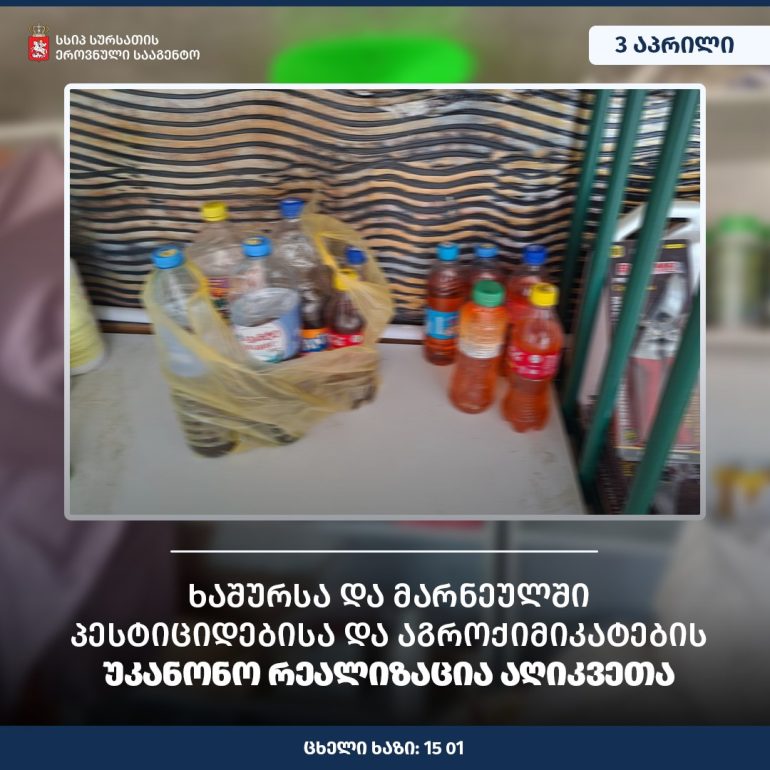 სურსათის ეროვნულმა სააგენტომ მარნეულსა და ხაშურში პესტიციდებისა და აგროქიმიკატების არალეგალური სარეალიზაციო ობიექტები გამოავლინა