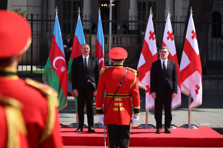აზერბაიჯანის რესპუბლიკის პრეზიდენტის დახვედრის ოფიციალური ცერემონია გაიმართა (ფოტოები)