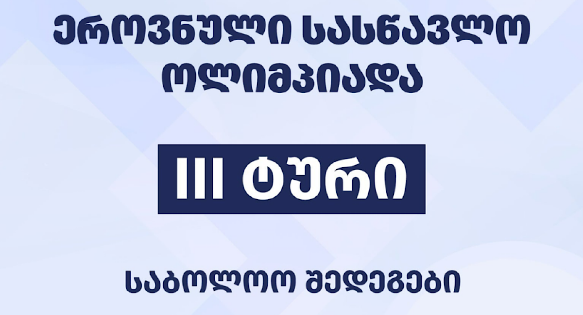 შეფასებისა და გამოცდების ეროვნული ცენტრის მიერ ორგანიზებული 2025–2026 სასწავლო წლის ეროვნული სასწავლო ოლიმპიადის მესამე ტურის საბოლოო შედეგები და მონაწილეთა რეიტინგული სია ხელმისაწვდომია ვებგვერდზე – online.naec.ge, – ინფორმაციას შეფასებისა და გამოცდების ეროვნული ცენტრი ავრცელებს.