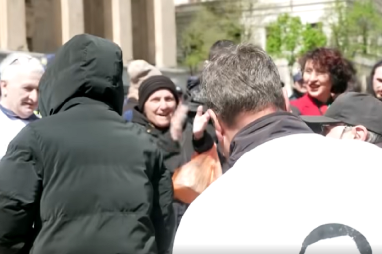9 აპრილის მემორიალთან მიტანილი გვირგვინი შეკრებილმა აქტივისტებმა გადააყირავეს