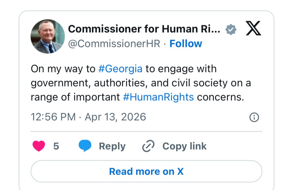 “მივემგზავრები საქართველოში, რათა მთავრობასთან და სამოქალაქო საზოგადოებასთან განვიხილო ადამიანის უფლებებთან დაკავშირებული მრავალი მნიშვნელოვანი საკითხი”