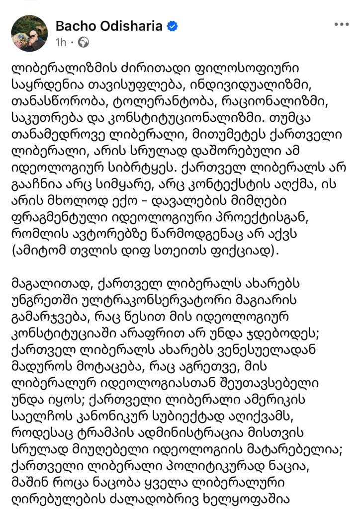 “ ქართველი ლიბერალი, ლიბერალიზმშიც კი უსამშობლოა”