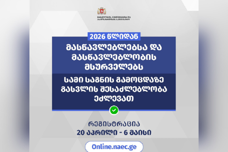 პირველად მასწავლებლებსა და მასწავლებლობის მსურველებს სამი საგნის გამოცდაზე გასვლის შესაძლებლობა ეძლევათ