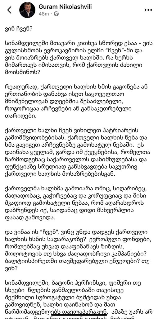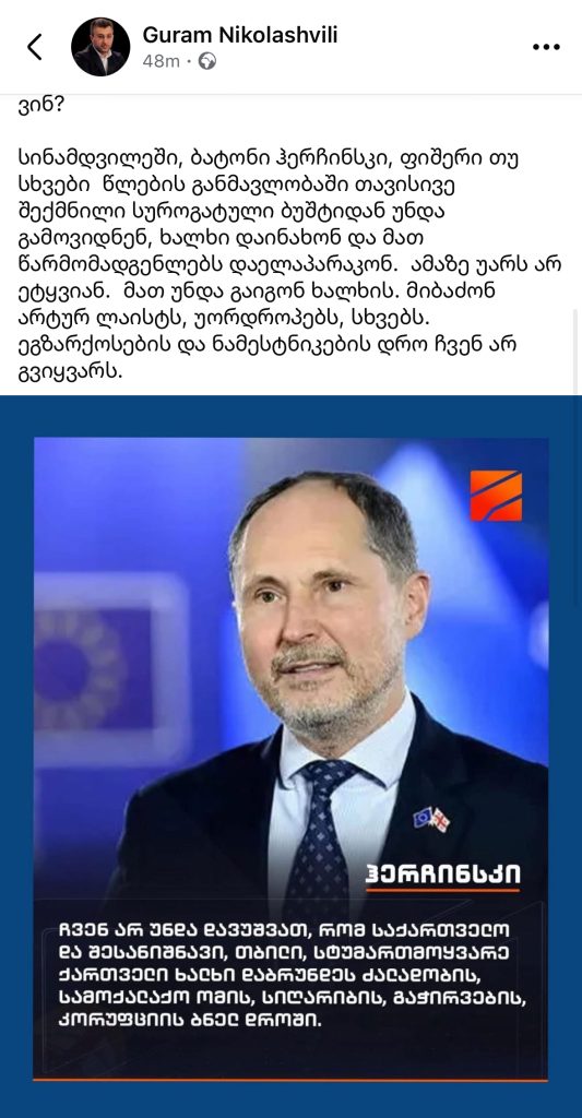 “ჰერჩინსკი თუ სხვები წლების განმავლობაში თავისივე შექმნილი სუროგატული ბუშტიდან უნდა გამოვიდნენ”